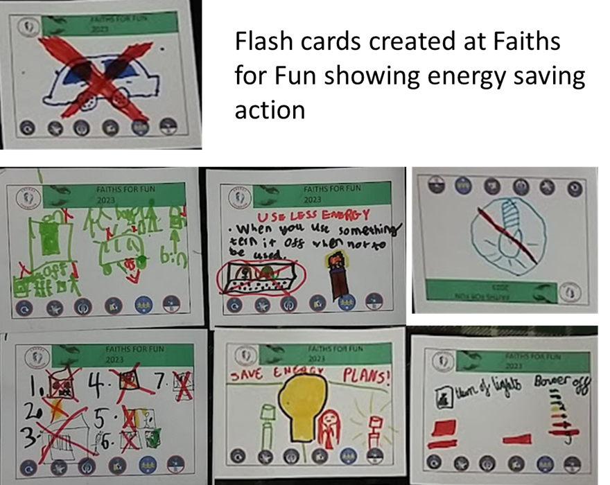 This year the Footsteps’ base involved creating energy saving flashcards, each highlighting different ways to save energy. Footsteps energy champion flashcards and shared experiences of how to save energy were used as inspirations.